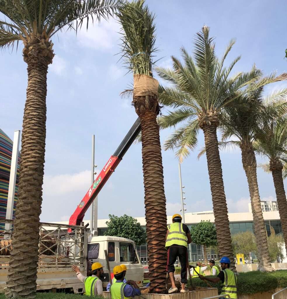 successfully completed the supply and installation of date palm  trees for Al Sadaam Landscape at Dubai Expo City. Our expert team provided premium palm trees with professional planting, irrigation, and maintenance services, enhancing Expo City Dubai with sustainable and iconic greenery.”